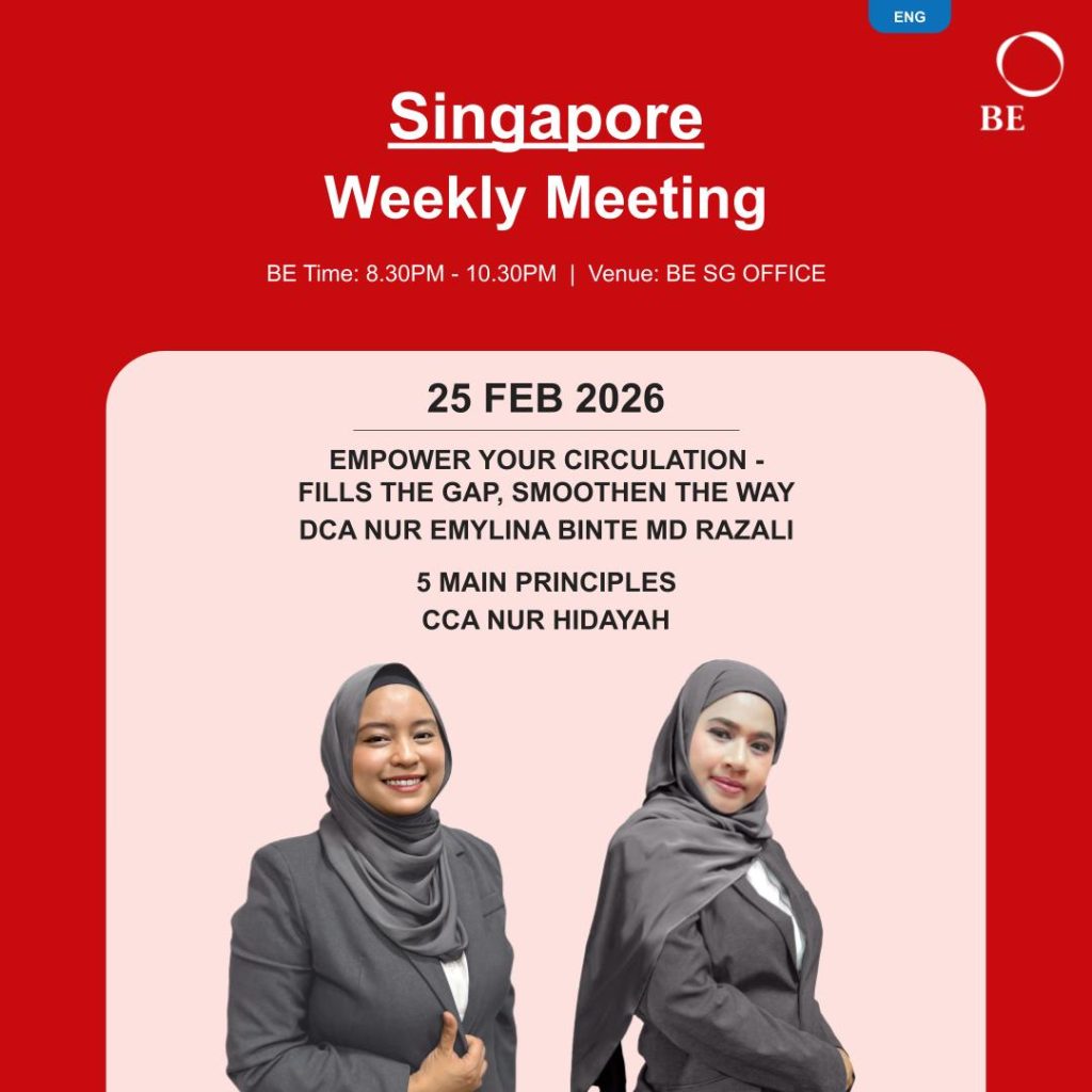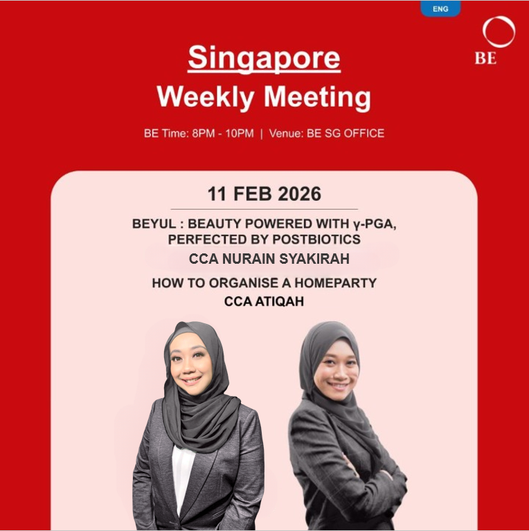 Her network has since grown beyond Singapore, reaching Malaysia, Brunei, and Indonesia. Today, Nurain serves as a Senior Crown Ambassador in BE International, inspiring others to step out of their comfort zones and build a life of purpose and abundance.